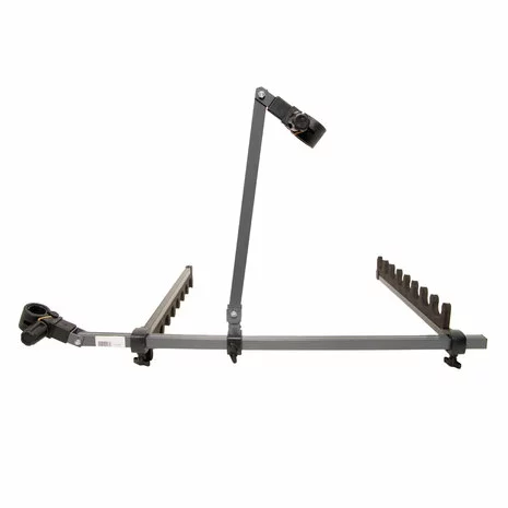 Deze topkitsteun biedt de visser een uitstekende oplossing voor het plaatsen van maar liefst acht topsets, in elke gewenste positie op één van de poten van de zitbox gemonteerd.