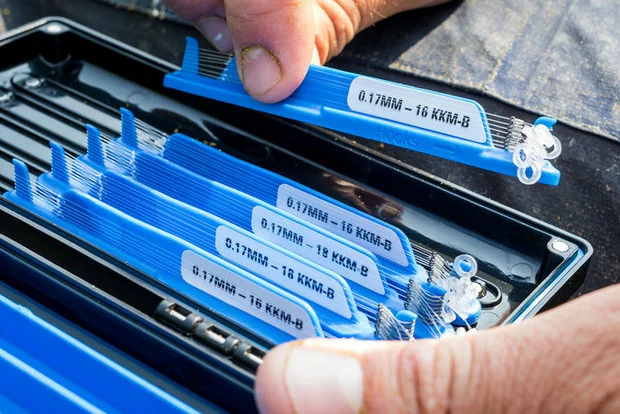 Voor elke onderlijn zijn KKM-B haken gebruikt, die geknoopt zijn aan de beproefde Reflo Power lijn.