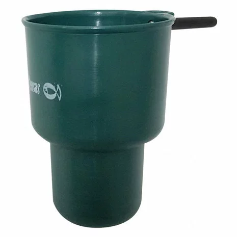 Pole cup met dubbele bodem om gelijktijdig twee aassoorten te voeren, bijvoorbeeld lokvoer en maden of lokvoer en gekleefde muggenlarven.